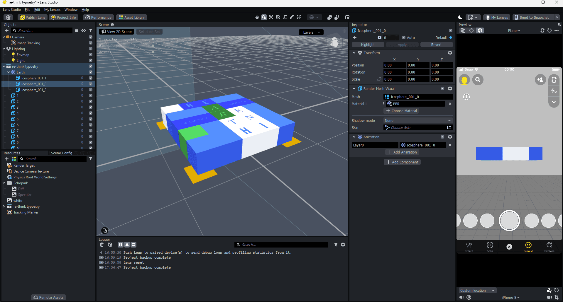 I have used Cinema 4D for modeling and Lens Studio for the AR image tracking via Snapchat.
